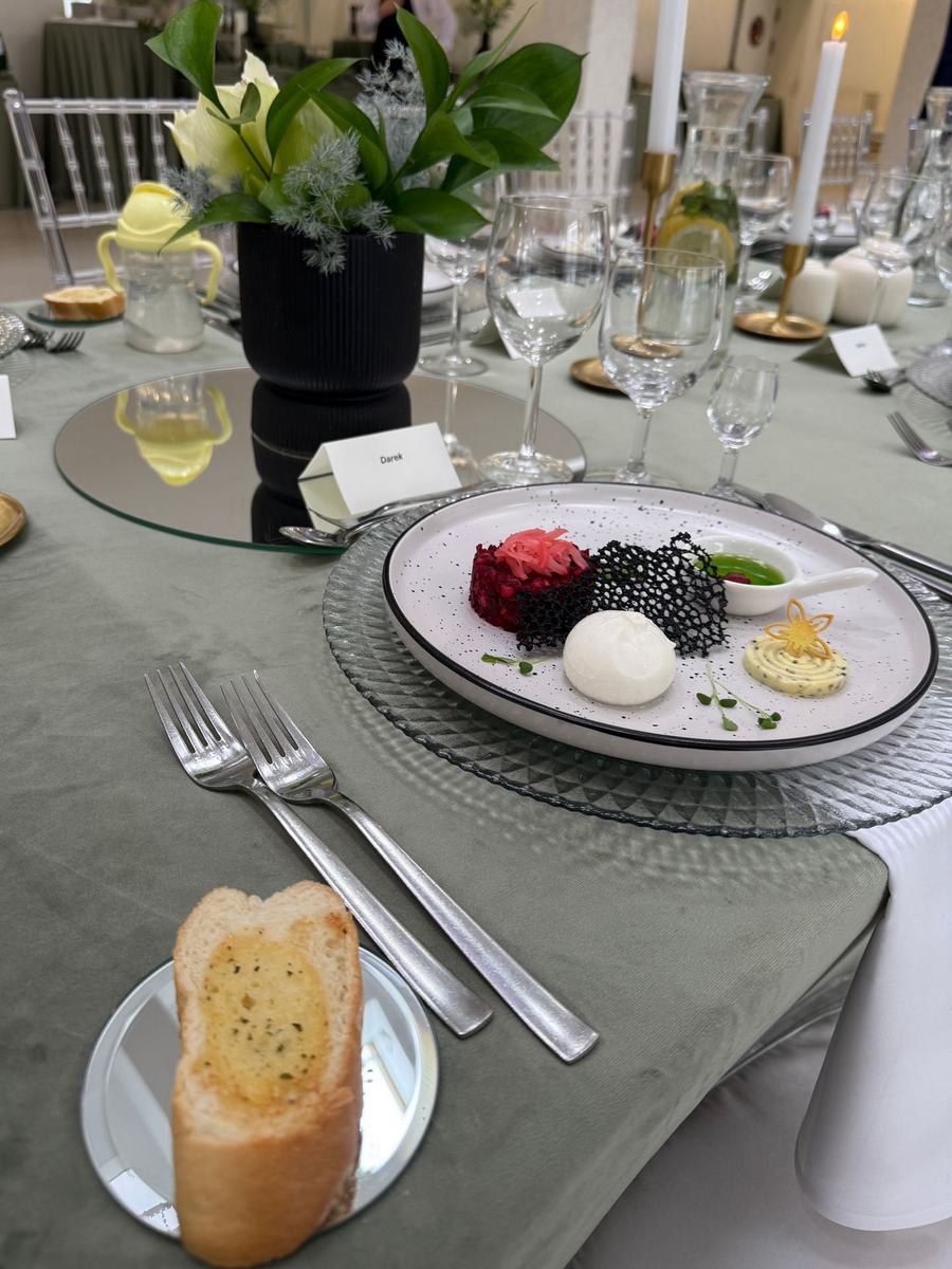 Ta realizacja udowadnia, że oliwka to kolor niezwykle wdzięczny i plastyczny – idealny dla tych z Państwa, którzy marzą o przyjęciu z klasą, ale w nowoczesnym, świeżym wydaniu.