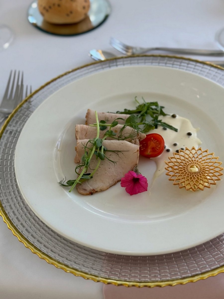 - Menu: Na talerzach małe dzieła sztuki – na start wyśmienita przystawka z pieczonym mięsem i jadalnymi kwiatami.